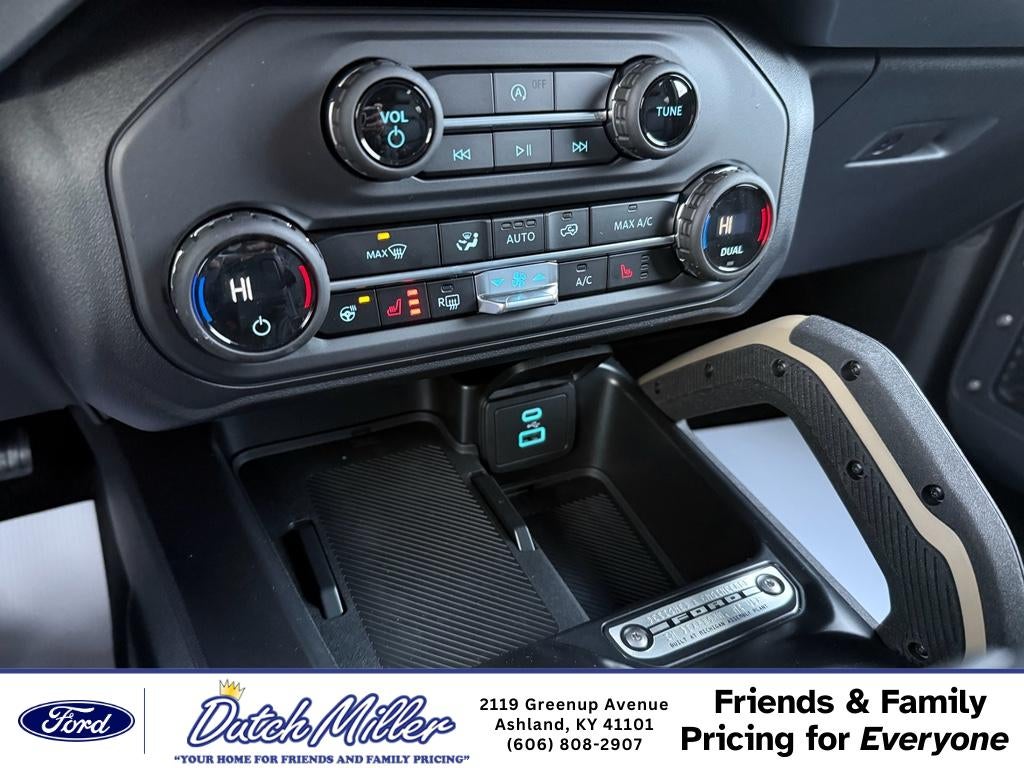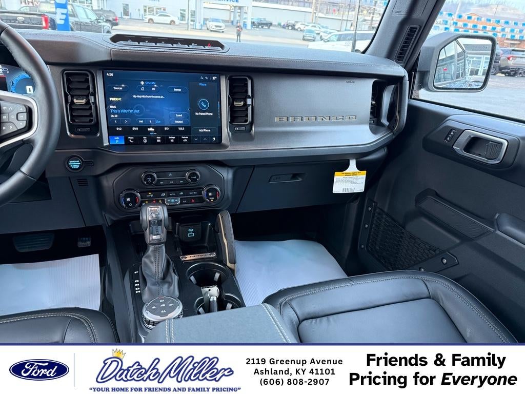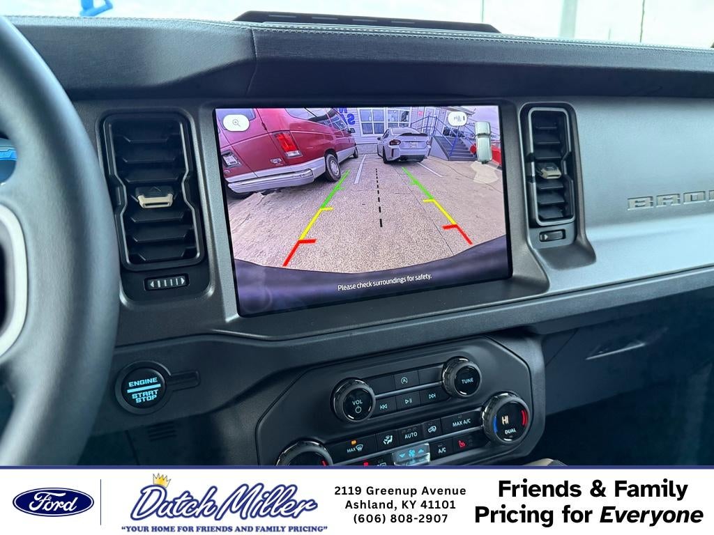 It warns of approaching vehicles with Cross-Traffic Alert. It offers Android Auto for seamless smartphone integration. Never get into a cold vehicle again with the remote start feature on this 2025 Ford Bronco . See what's behind you with the back up camera on this vehicle. An off-road package is equipped on this vehicle. Apple CarPlay: Seamless smartphone integration for this model - stay connected and entertained on the go! The Ford Bronco features a hands-free Bluetooth® phone system. Enjoy the heated seats in this Ford Bronco you will never buy a vehicle without them. Everyone loves the comfort of having a warm seat on those cold winter days. This 1/2 ton suv is pure luxury with a heated steering wheel. The rear parking assist technology on it will put you at ease when reversing. The system alerts you as you get closer to an obstruction. You'll never again be lost in a crowded city or a country region with the navigation system on this 2025 Ford Bronco .