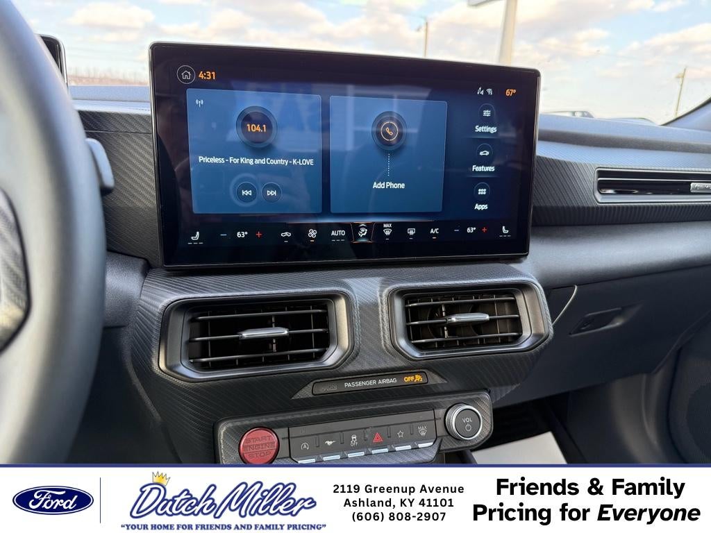 Experience pure driving excitement in this 2026 Ford Mustang EcoBoost, a head-turning RWD coupe powered by a spirited 4-cylinder 2.3L gasoline engine. Located in Ashland, KY, this Ford Mustang delivers the perfect blend of performance, modern tech, and iconic style — and it's priced to move with the best price in the area. Under the hood, the turbocharged 2.3L EcoBoost engine provides thrilling acceleration and efficient fuel economy, while rear-wheel drive preserves the classic Ford Mustang handling and driver-focused feel. Inside, enjoy seamless connectivity with Apple CarPlay and Android Auto, plus Hands-Free Bluetooth® for safe, convenient calling and streaming on the go. Start your engine from a distance with Remote Start to warm up or cool down the cabin before you step in. Parking is simple thanks to Rear Parking Sensors that help you navigate tight spots with confidence. The Ford Mustang's athletic exterior and refined interior details make every trip memorable, whether it's a weekend cruise or your daily commute. This 2026 Ford Mustang EcoBoost located in Ashland, KY, represents exceptional value and performance—offered at the best price around. Don't miss your chance to own a modern muscle icon loaded with the technology and features drivers want. Schedule a test drive today and feel the Ford Mustang difference for yourself.