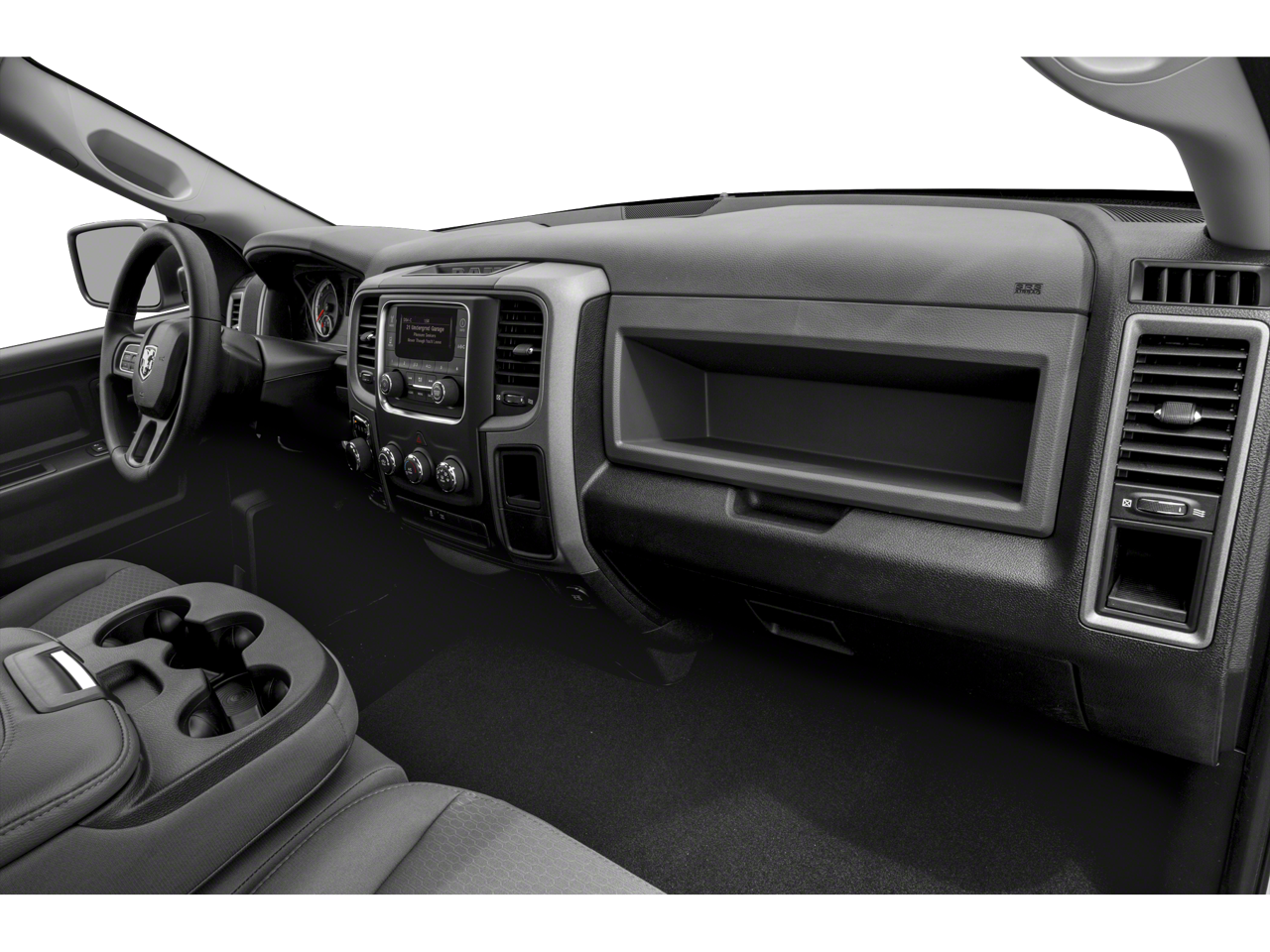 Quick Order Package 27J Express: 6. 900 lbs GVWR; Delete Spray in Bedliner; Rear Floor Mats; Front Floor Mats; Front Fog Lamps; Body Color Front Fascia; Body Color Grille; Delete Class IV Receiver Hitch; Carpet Floor Covering; Body Color Rear Bumper with Step Pads; Ram 1500 Express. Express Value Package: Uconnect 3 Radio with 5" Display; Cloth 40/20/40 Bench Seat; Rear Floor Mats; Front Floor Mats; Carpet Floor Covering; Remote Keyless Entry with All-Secure. Express Black Accent Package: Black Exterior Truck Badging; Black RAM Head Tailgate Badge; Full Size Temporary Use Spare Tire; 4x4 Flat Black Badge; Black Headlamp Bezels; Semi-Gloss Black Hub; 20" X 8" Semi-Gloss Black Aluminum Wheels; Body Color Grille with Black RAM's Head; P275/60R20 BSW AS Tires. Quick Order Package 22J Express: Delete Spray in Bedliner; Rear Floor Mats; Front Floor Mats; Front Fog Lamps; Body Color Front Fascia; Body Color Grille; Delete Class IV Receiver Hitch; Carpet Floor Covering; Body Color Rear Bumper with Step Pads; Ram 1500 Express. Uconnect 3 Radio with 5" Display. Cloth 40/20/40 Bench Seat. SiriusXM Satellite Radio. Remote Keyless Entry with All-Secure. Diamond Black Crystal PC. **Equipment listed is based on original vehicle build and subject to change. Please confirm the accuracy of the included equipment by calling the dealer prior to purchase.**