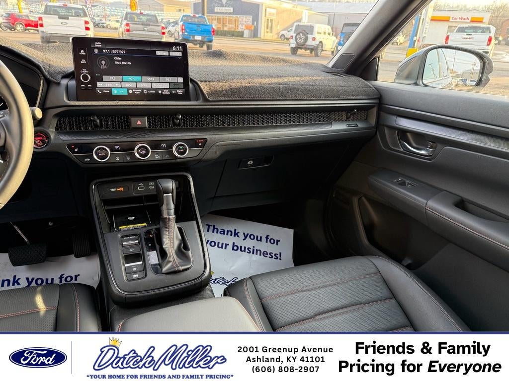 Discover exceptional value with this 2025 Honda CR-V Hybrid Sport-L, now available in Ashland, KY. This low-mileage gem has just 9,396 miles and features Honda's efficient 4‑cyl, 2.0L Full Hybrid Electric (FHEV) powertrain—delivering impressive fuel economy without sacrificing performance. Priced to sell, this Honda CR-V Hybrid Sport-L offers the best price in the area for a like-new, feature-packed SUV. Comfort and convenience shine with Remote Start and Hands-Free Bluetooth® for seamless connectivity on every drive. Safety is front and center: enjoy Forward Collision Warning and Adaptive Cruise Control for added confidence on highways and busy streets. This vehicle is a CARFAX 1-Owner model, reflecting careful ownership and solid maintenance history. Inside, you'll find a thoughtfully designed cabin with premium materials, advanced infotainment, and spacious cargo capacity—perfect for families, commuters, or weekend adventures. The hybrid system provides smooth acceleration and quiet operation while maximizing efficiency for daily driving and longer trips. Located in Ashland, KY, this 2025 Honda CR-V Hybrid Sport-L combines low mileage, advanced technology, and top safety features at the best local price. Contact us today to schedule a test drive or request the CARFAX report—don't miss this opportunity to own a high-value hybrid SUV.