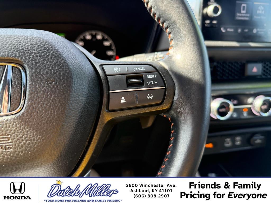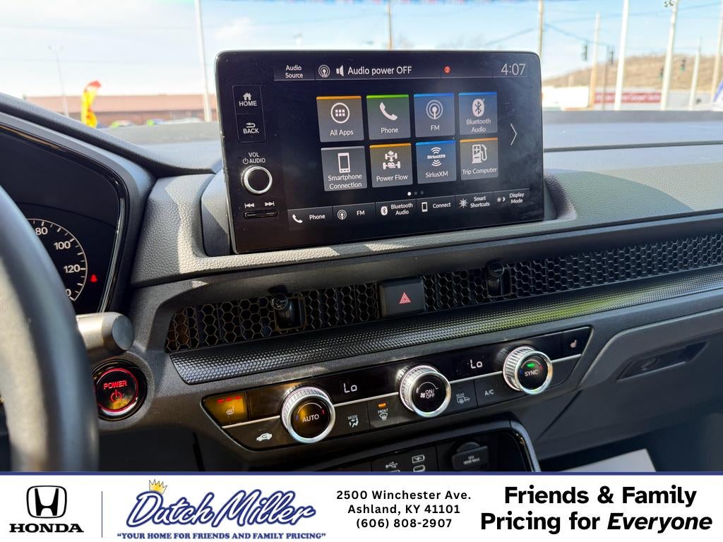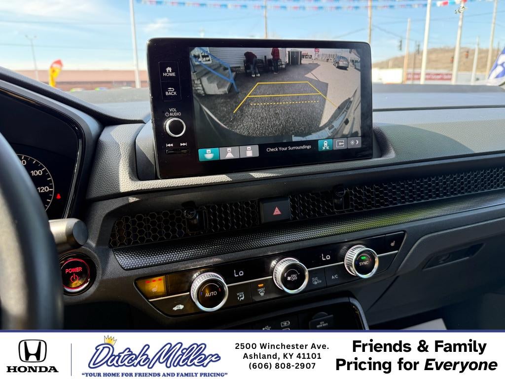 Our dealership has already run the CARFAX report and it is clean. A clean CARFAX is a great asset for resale value in the future. Start this small suv from inside with remote start. The leather seats in this vehicle are a must for buyers looking for comfort, durability, and style. This model features a hands-free Bluetooth® phone system. This 2025 Honda CR-V Hybrid 's Forward Collision Warning system alerts the driver to potential front-end collisions, enhancing safety. This vehicle is a certified CARFAX 1-owner. The rear parking assist technology on this vehicle will put you at ease when reversing. The system alerts you as you get closer to an obstruction. The vehicle keeps you comfortable with Auto Climate. See what's behind you with the back up camera on this small suv. This unit has automated speed control that adjusts to maintain a safe following distance, enhancing highway driving convenience.
